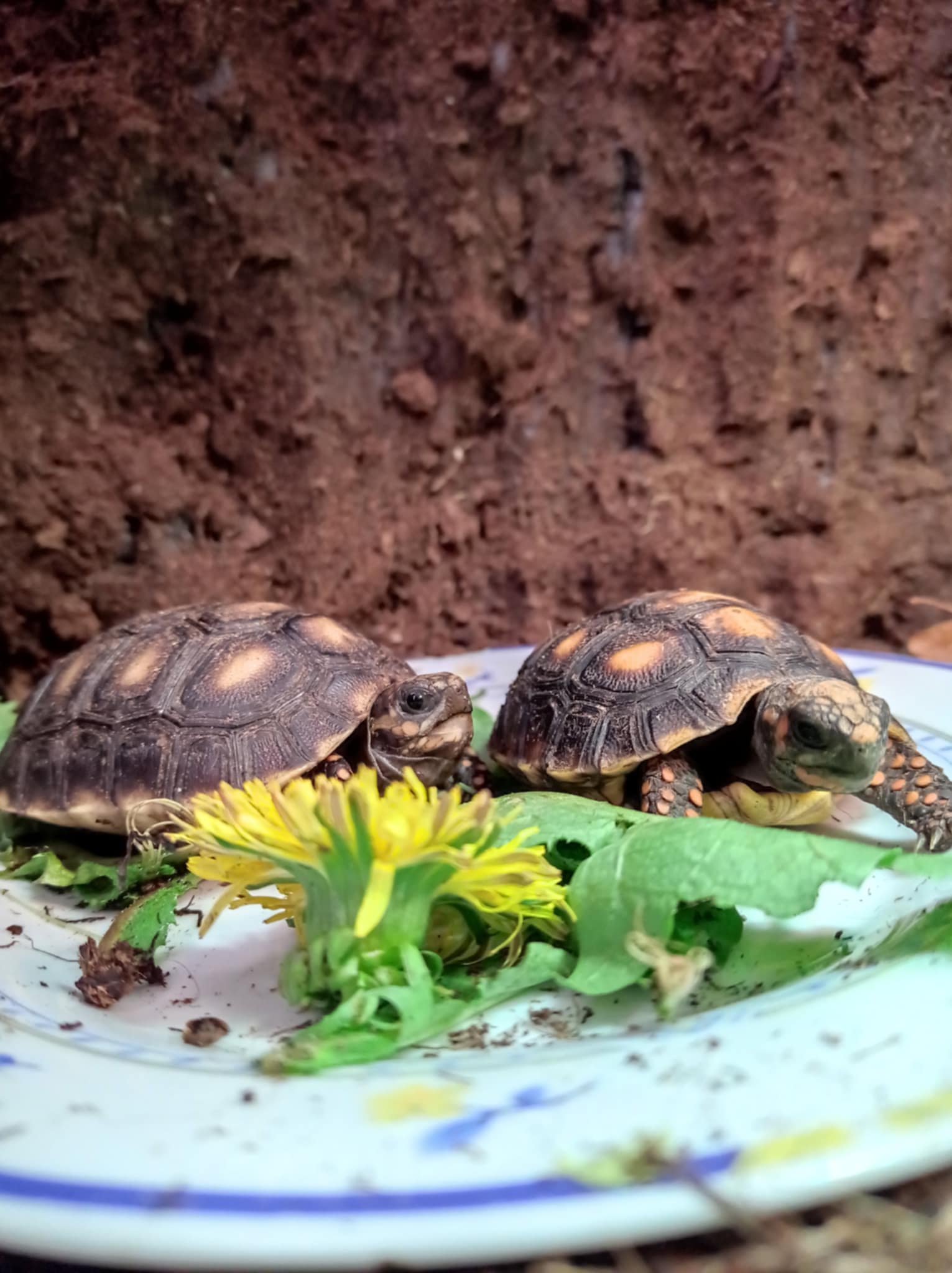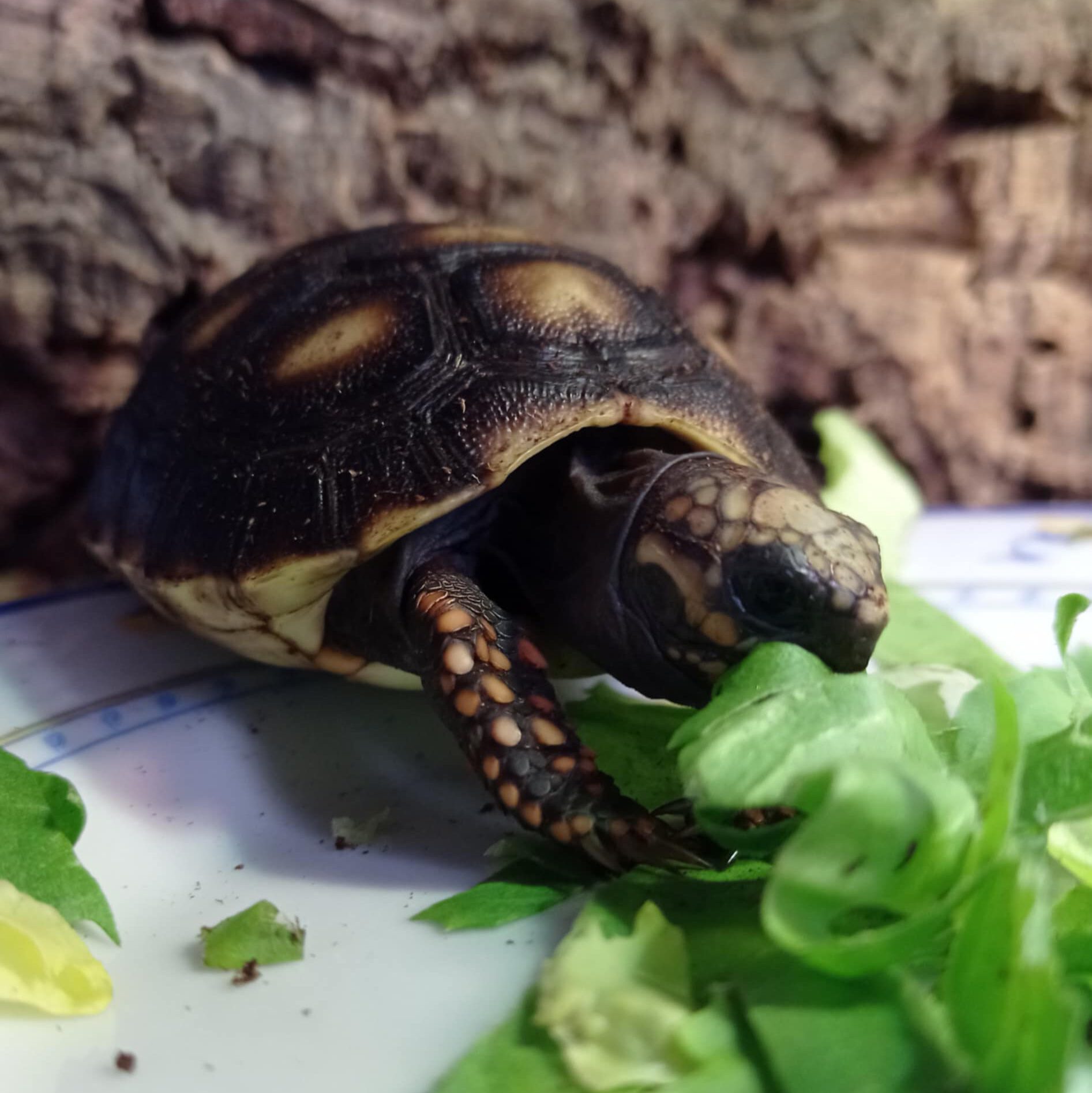 De kolenbranderlandschildpad ( ook wel de red-footed tortoise genoemd, Chelonoidis Carbonarius) is een populaire middelgrootte soort met levendige kleuren en relatief vriendelijk karakter