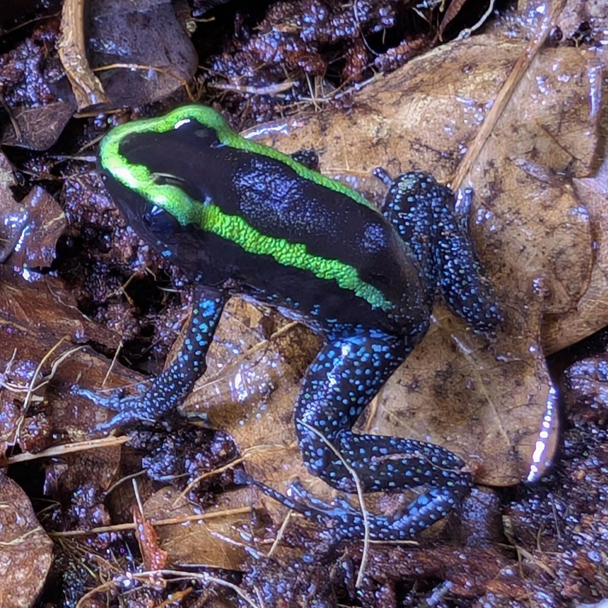 Qua voeding is de Phyllobates aurotaenia iets minder kieskeurig dan veel andere Dendrobaten. Naast fruitvliegen (kleine en grote variant) eten ze ook graag wat grotere prooidieren, zoals kleine krekels en ovenvisjes. Ook springstaarten, bladluizen en weideplankton worden met smaak gegeten. Voor een optimale gezondheid is het verstandig de voedseldieren wekelijks te bestuiven met een vitaminen- en mineralenmix.