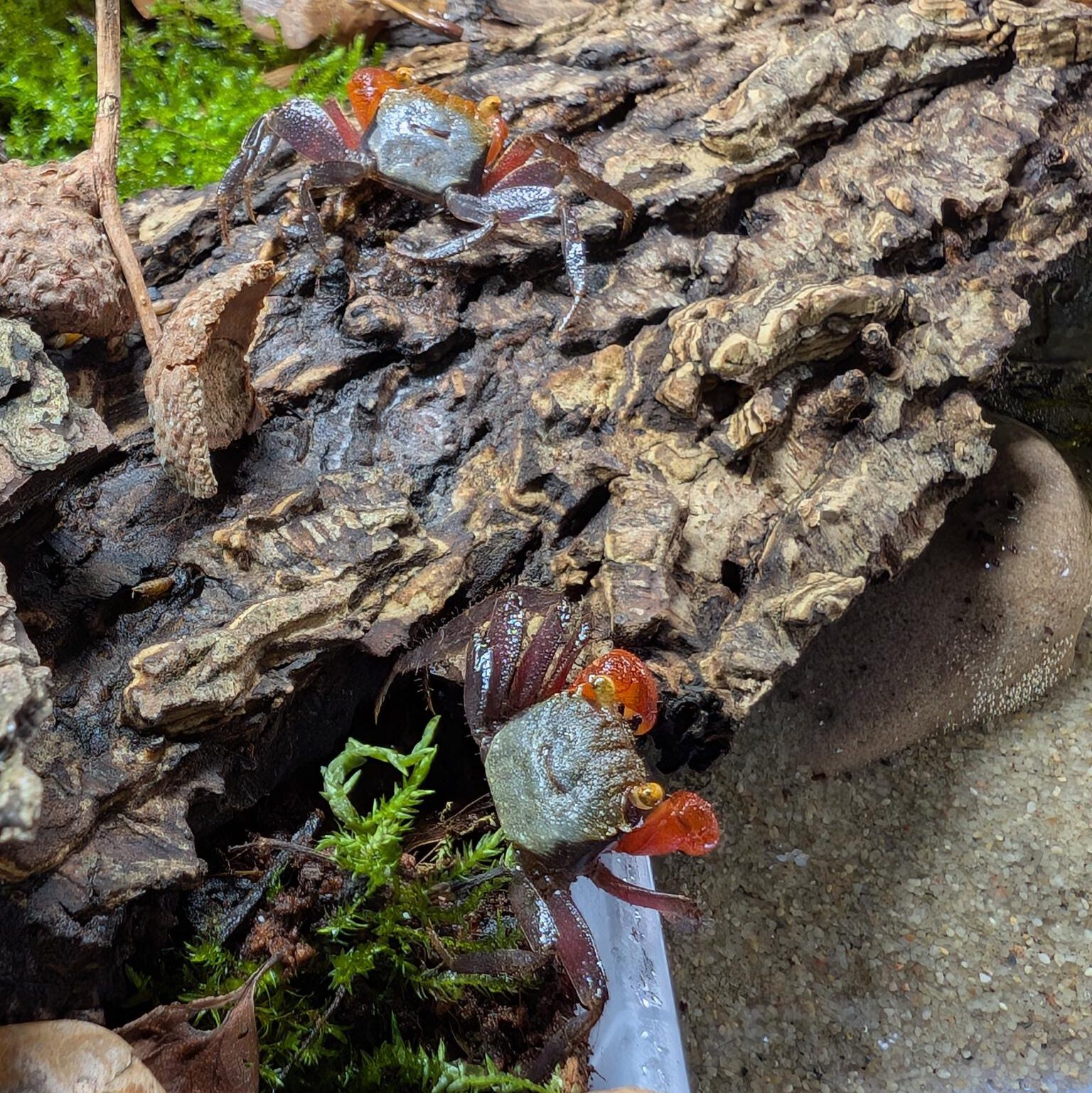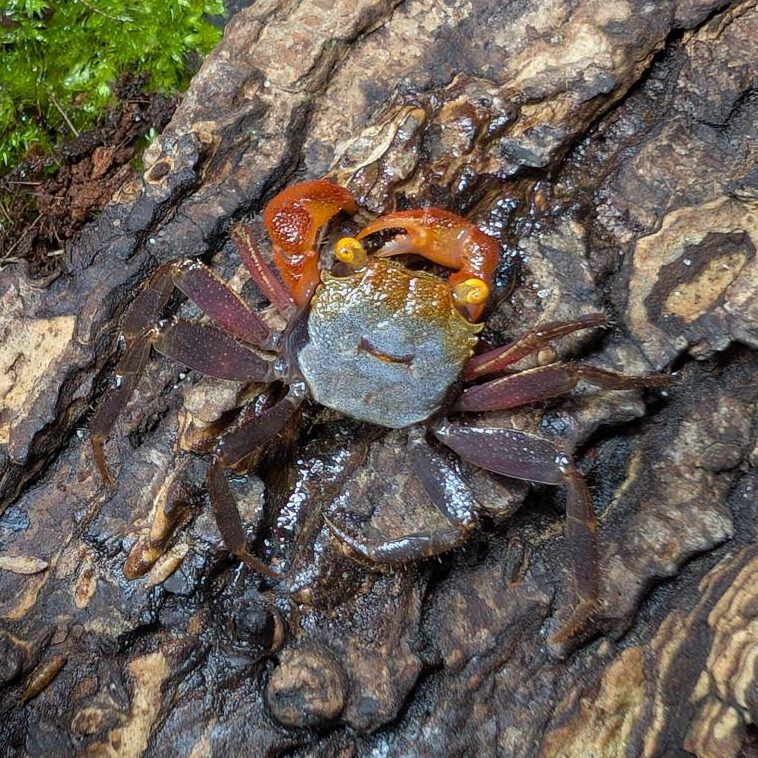 De Geosesarma rouxi is een kleine, felgekleurde krab die goed geschikt is om te houden in paludaria.