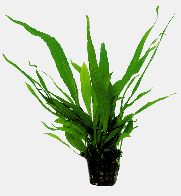 Zeer sterke, lichtgroene plant voor alle aquaria. Deze plant kan goed op hout, steen of achterwand bevestigd worden. De wortelstok dient altijd boven het groeimedium uit te komen. Ook geschikt voor paludaria
