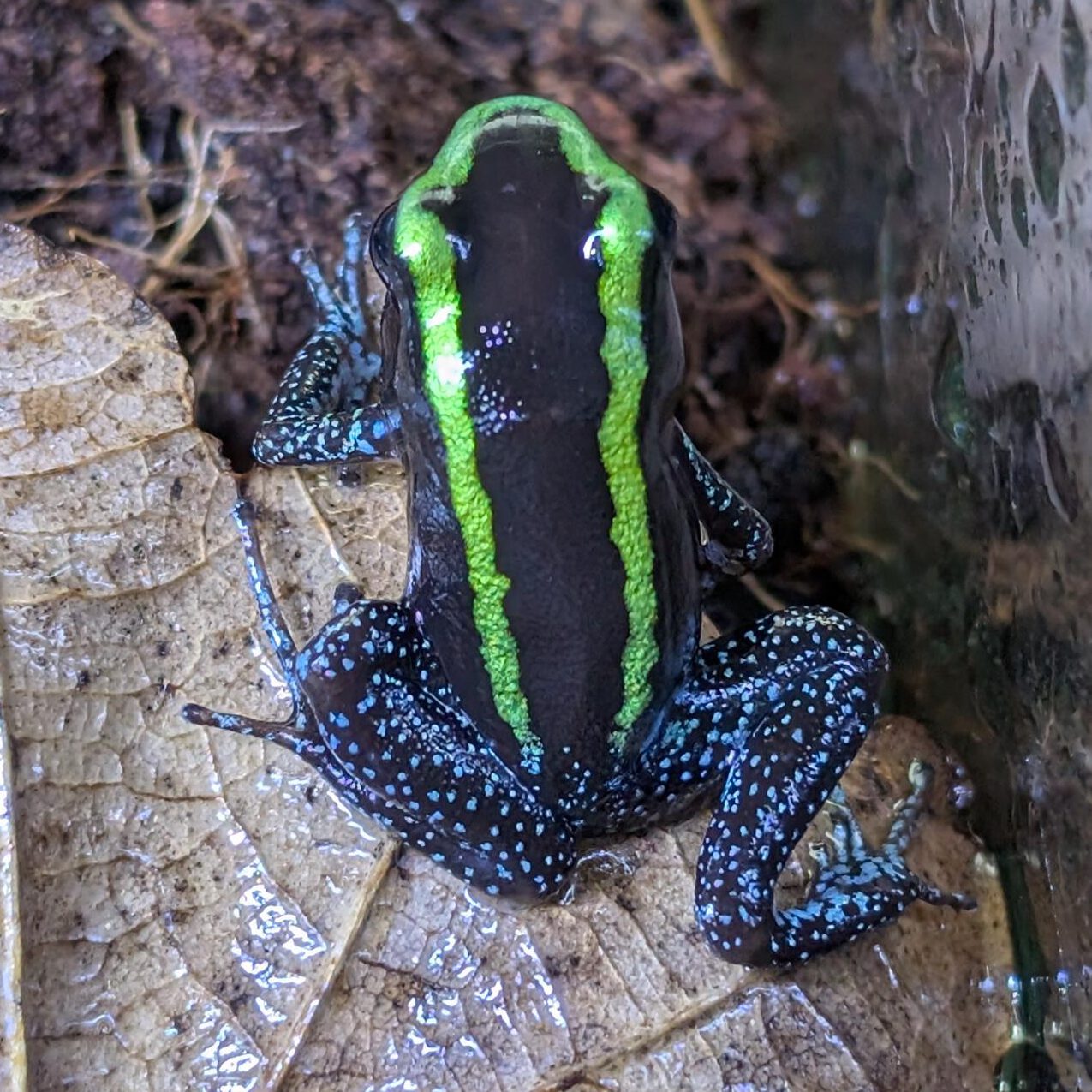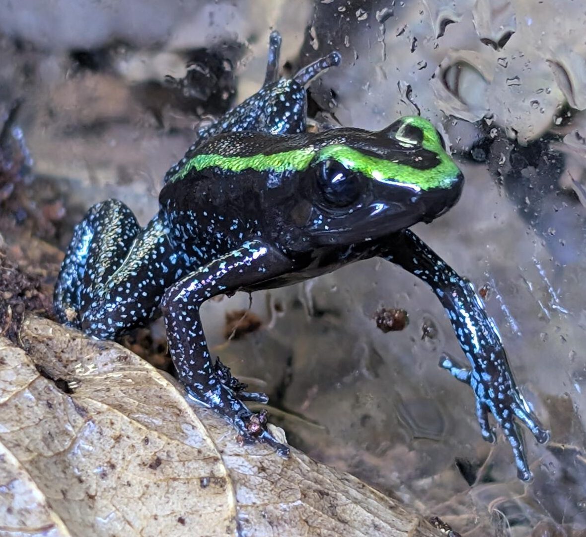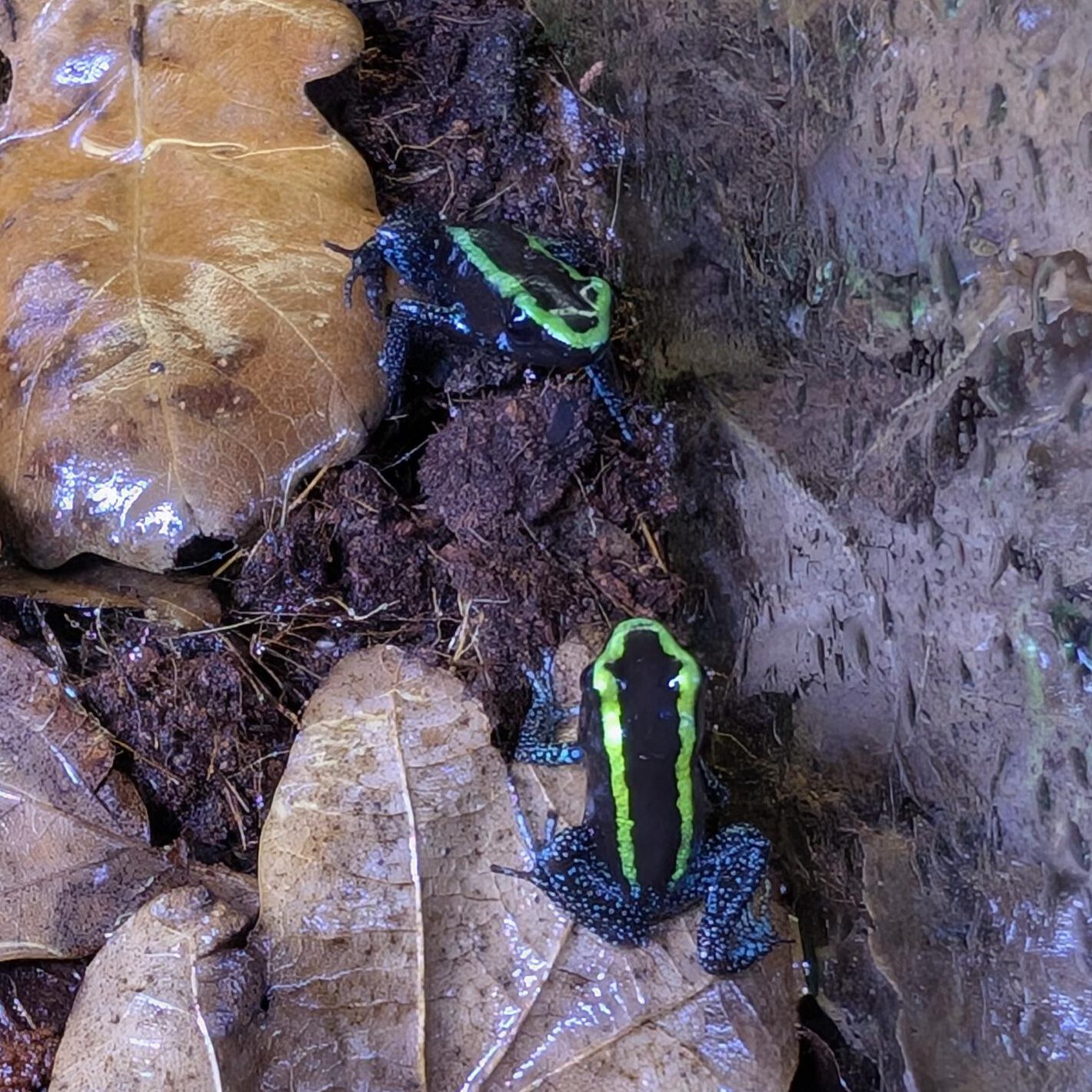 Deze soort voelt zich thuis in een rijk beplant terrarium met voldoende bodemoppervlak. Voor een koppel is een formaat van 40x40x40 cm geschikt. Omdat ze onderling niet agressief zijn, kunnen ze in grotere terraria, zoals 100x50x50 cm, ook prima in groepen worden gehouden.