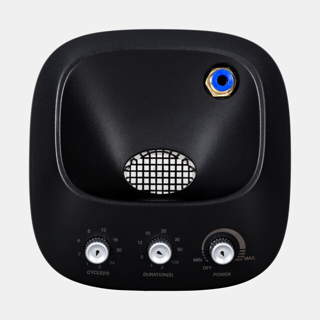 Gemakkelijk en handig bij te vullen aan de bovenkant van het apparaat. Verander de cyclus, duur en output door de draaiknoppen naar wens aan te passen.