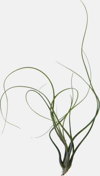 Compacte luchtplant heeft een ronde bolvormige basis en lange, kronkelende, slanke bladeren