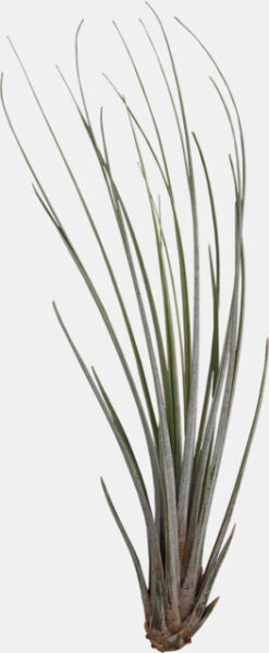 Deze luchtplant heeft slanke, grasachtige bladeren die uit een kleine voet groeien. De bladeren zijn grijsgroen tot zilvergrijs, bedekt met haartjes die vocht opnemen.