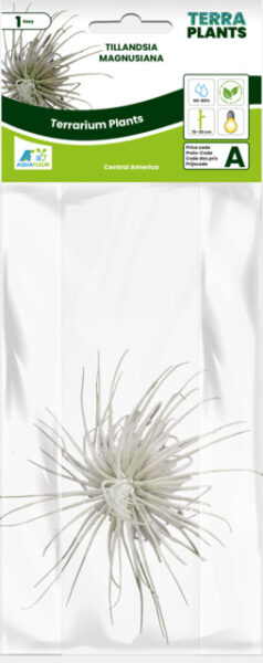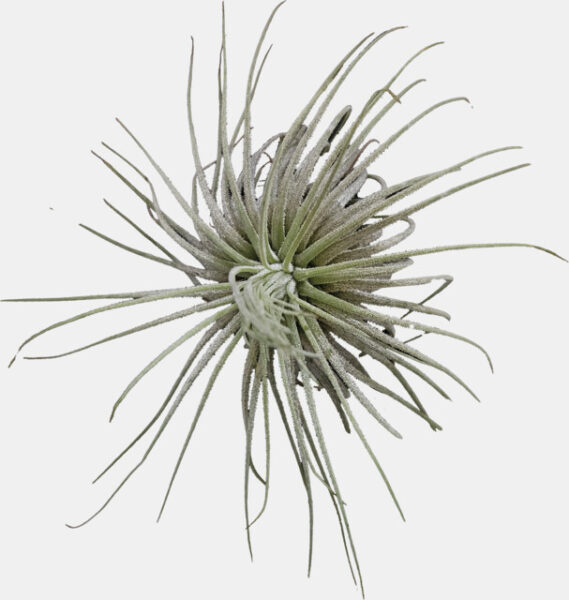 Deze luchtplant vormt een compacte rozet van zachte, grijsgroene tot zilvergrijze bladeren die licht gebogen zijn. De bladeren zijn fluweelachtig door een dikke laag trichomen (kleine haartjes), waarmee de plant vocht opneemt uit de lucht.