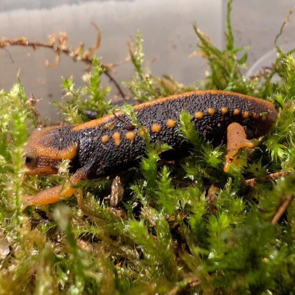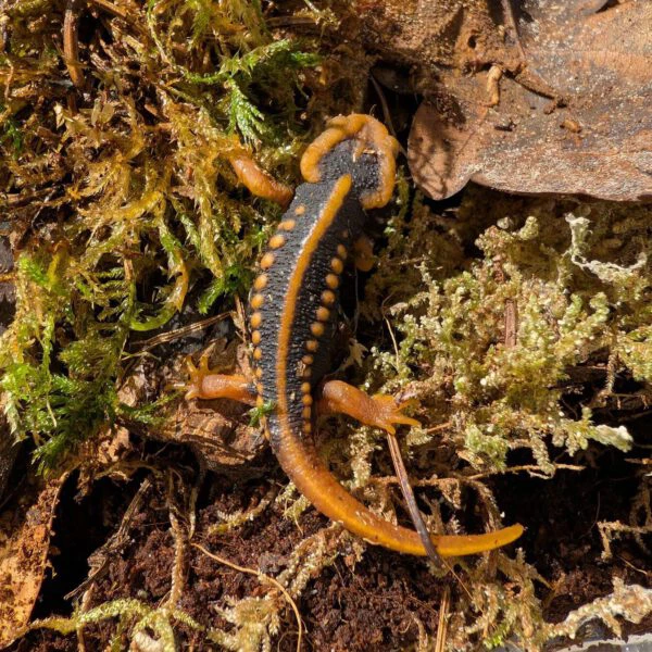 De Tylototriton shanjing, is een opvallende salamander met een donker lichaam en feloranje accenten op de rug, kop en staart. Deze soort wordt ongeveer 18–20 cm groot en is een echte blikvanger in een terrarium.