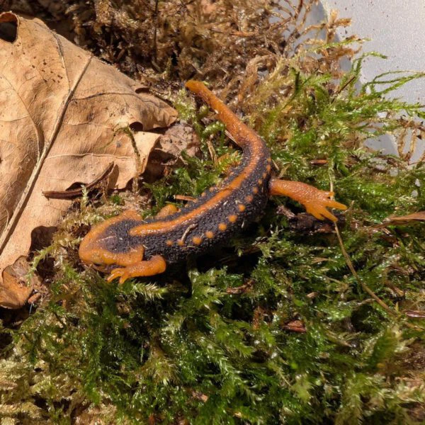 Huisvesting: vochtig terrarium met mos, schuilplaatsen en waterbak